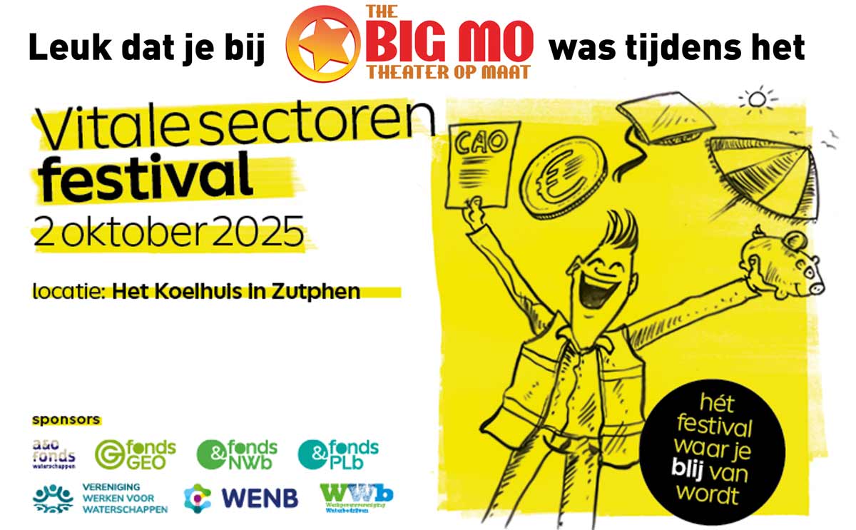 Heb je onze voorstelling of workshop bezocht op het Vitale Sectoren Festival? Of ben je gewoon nieuwsgierig geraakt naar wat improvisatietheater kan betekenen voor sociale en fysieke veiligheid binnen jouw organisatie? Dan ben je op de juiste plek.